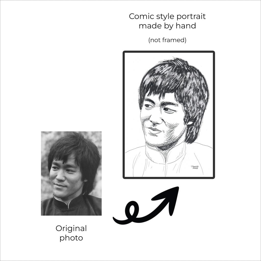 I can create a custom comic-style portrait, based on your photo or the photo of your loved ones.